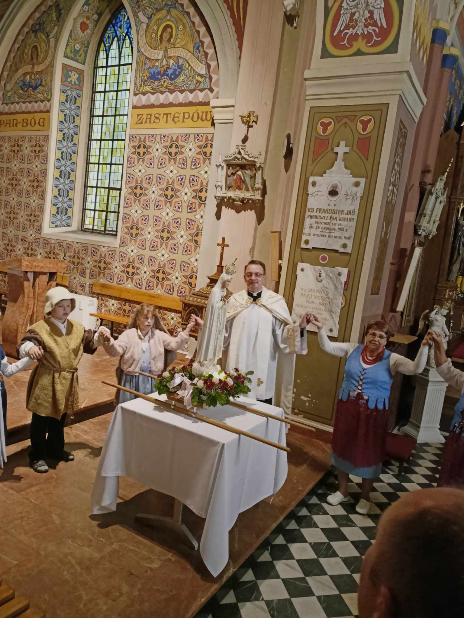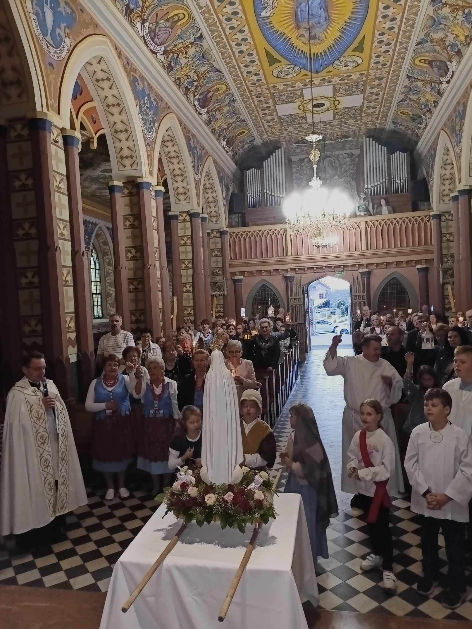 W czwartek, 13 czerwca, o godz. 19.00 Mszą Świętą rozpoczęliśmy drugie w tym roku nabożeństwo fatimskie. Po skończonej liturgii Mszy Świętej wszyscy zgromadzeni w świątyni podjęli modlitwę różańcową w procesji światła wokół świątyni. Figurę Matki Bożej Fatimskiej oraz modlitwę różańcową poprowadziły Panie z asysty parafialnej. Trójka dzieci z naszej parafii reprezentowała dzieci fatimskie: Hiacyntę, Franciszka i Łucję. Nabożentwo zakończyło się Apelem Jasnogórskim oraz wspólnym śpiewem pieśni maryjnych. Dziękujemy wszystkim za wspólnotę modlitwy, Paniom za udekorowanie Figury Matki Bożej, Paniom z asysty parafialnej, dzieciom oraz wspólnocie Odnowy w Duchu Świętym za oprawę wokalną.